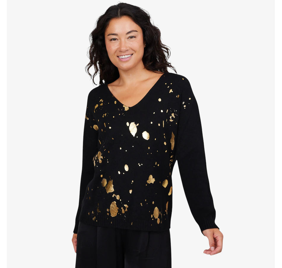 A chic addition to your autumn look, this foil detailing V-neck sweater will become an immediate style favourite.