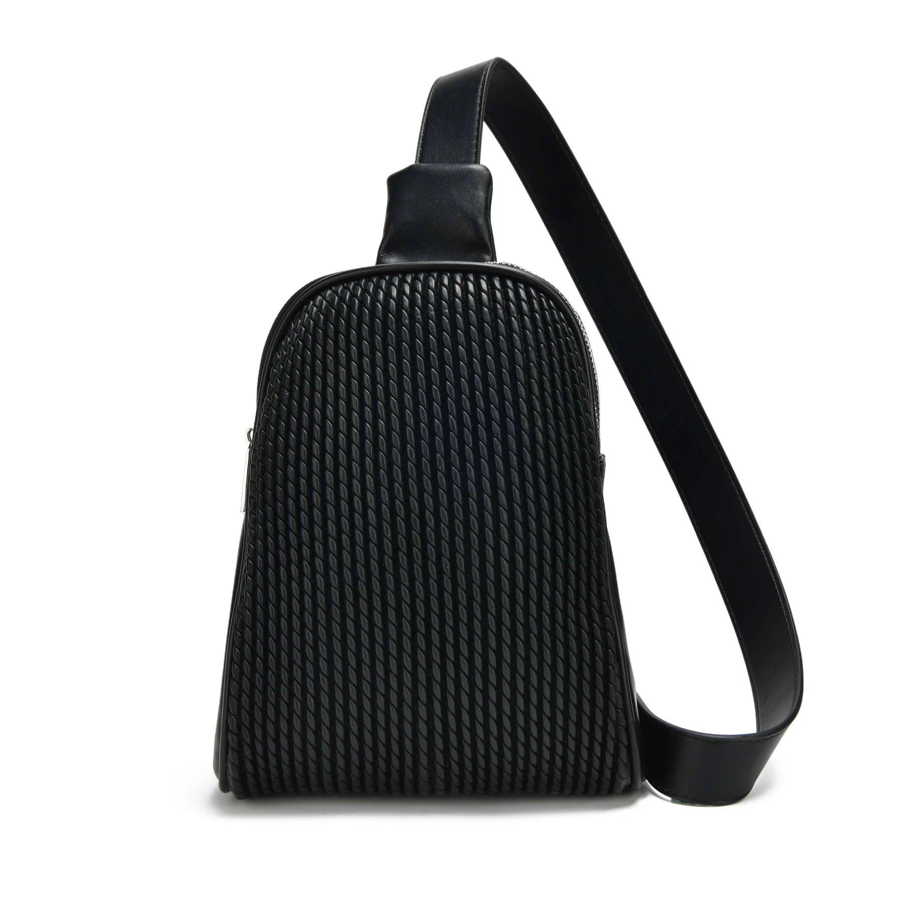 Double zipped and ready to go, this everyday sling backpack is fun and sleek.