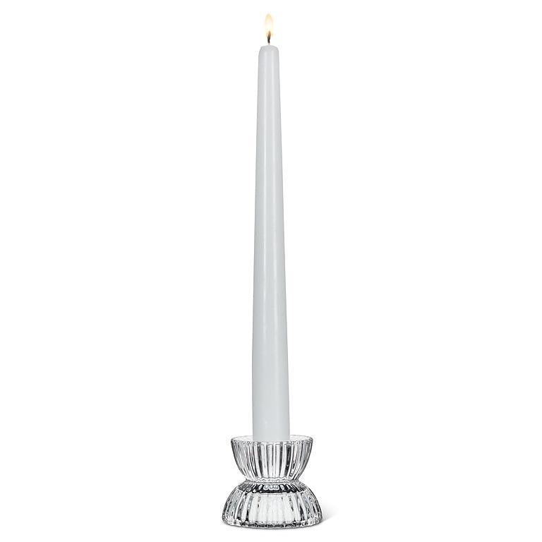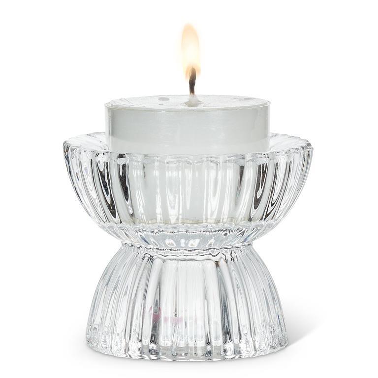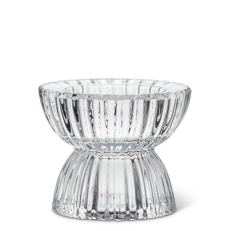 Add some elegance to any space with this stylish Reversible Ridged Candle Holder. Crafted out of glass, the simplicity of this tealight or taper holder is elevated by its ribbed body for an understated, contemporary complement to the warmth of your candle.