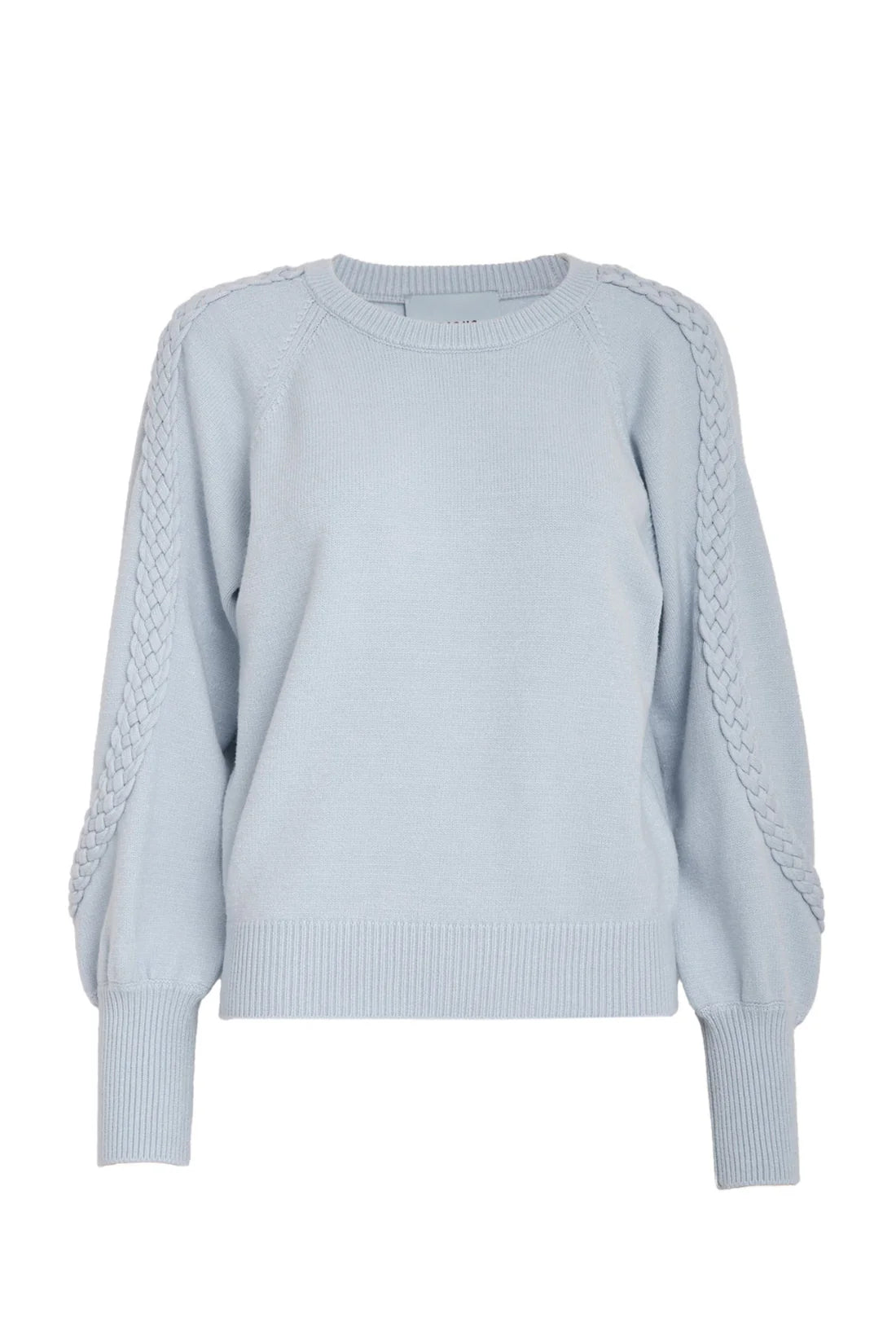 The Verona Knit Pullover combines timeless elegance with modern design details. Crafted from soft knit fabric, this pullover features distinctive braid detailing along the puff sleeves that adds visual interest and dimension. The fitted hem creates a flattering silhouette that works beautifully layered or worn solo. Perfect for elevating your everyday wardrobe with a piece that balances comfort and style.