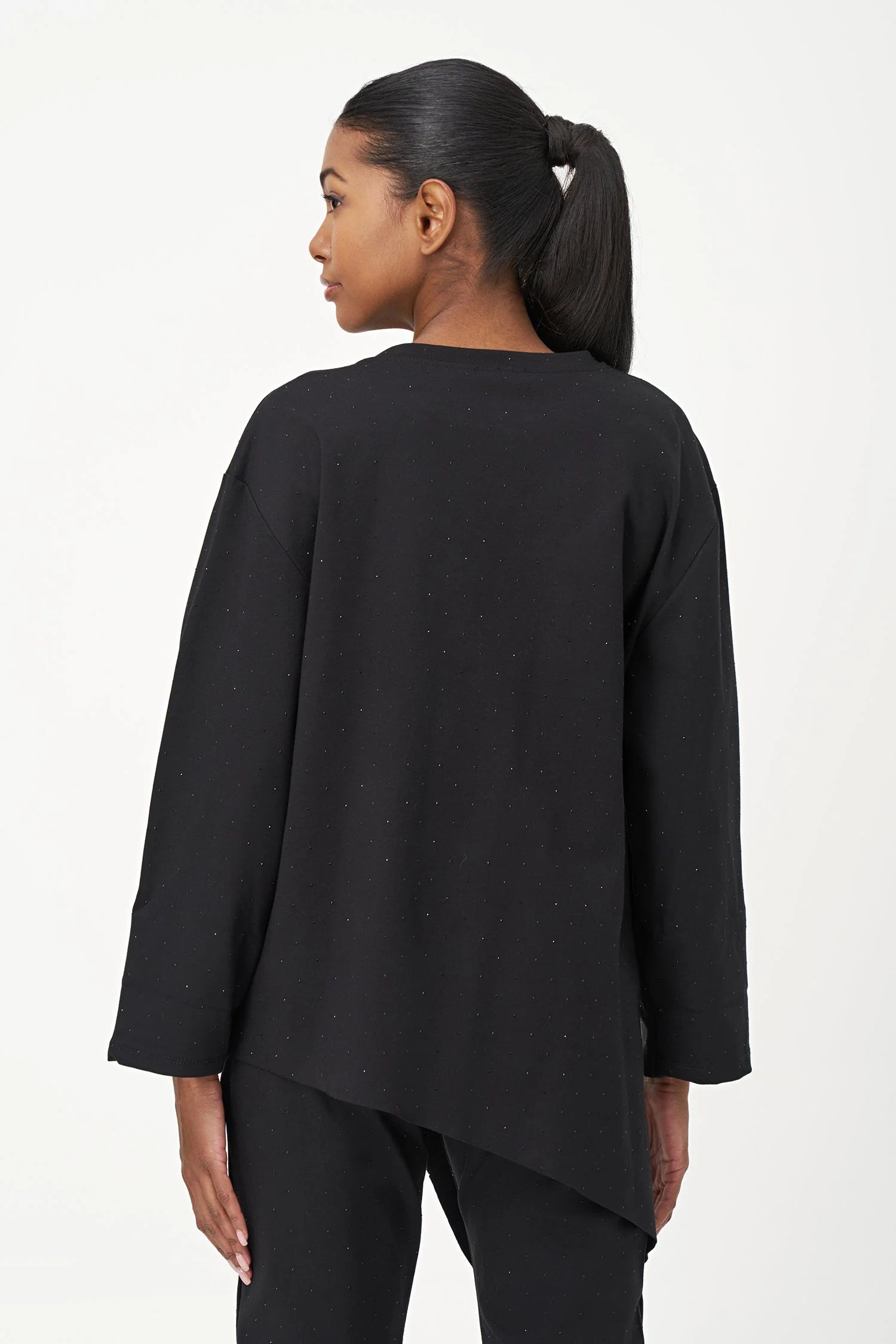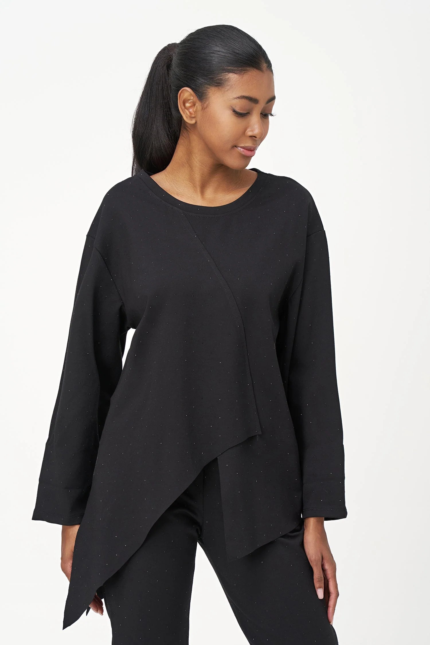 Elevate your everyday wardrobe with this refined knit tunic, featuring a classic crew neckline and long sleeves for timeless appeal. The asymmetrical hemline creates an unexpected silhouette, while decorative studs add an edgy sophistication. Crafted for versatility, this piece transitions seamlessly from casual outings to polished occasions, offering a modern twist on a wardrobe essential.