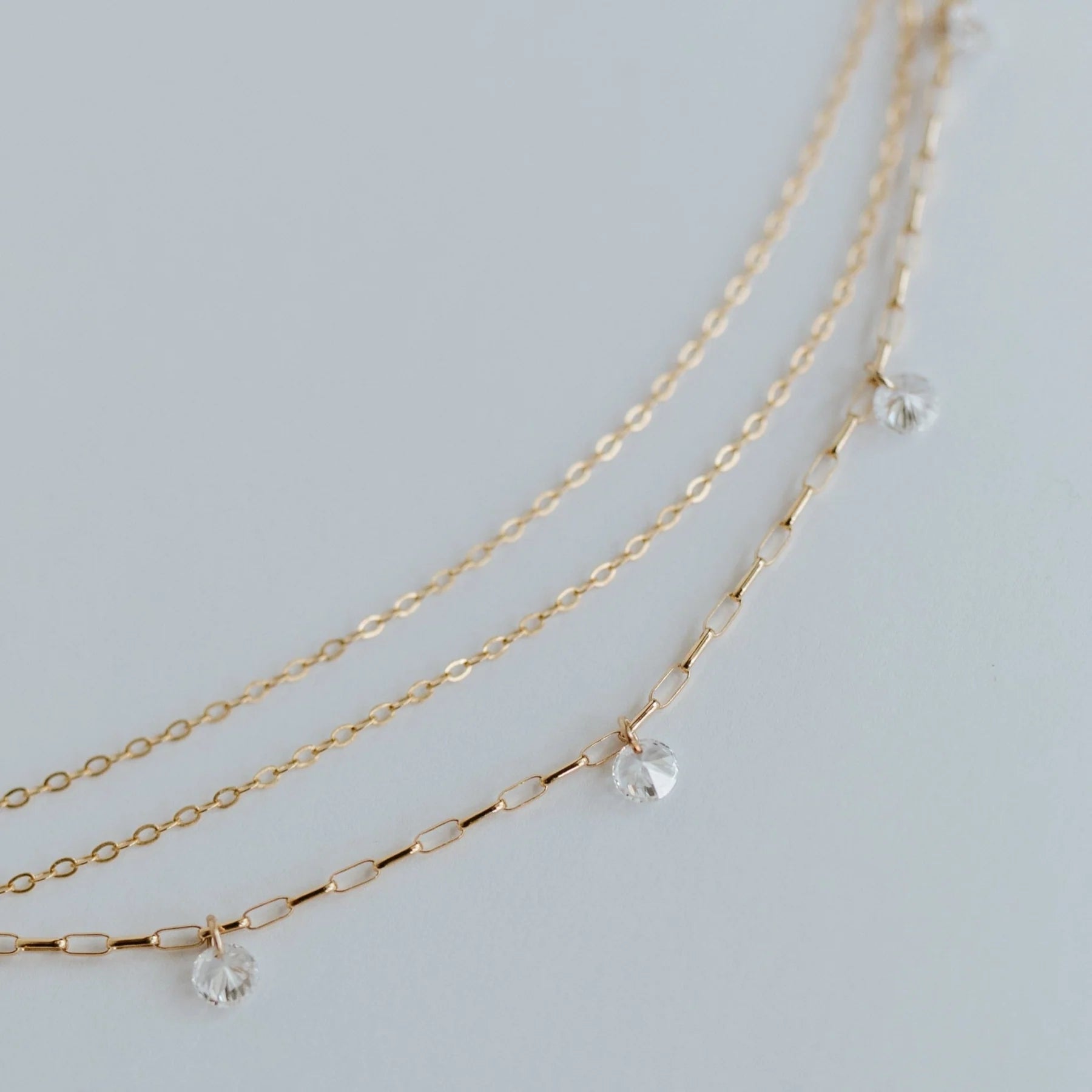 14kt gold filled chain bracelet featuring 3mm CZ stones 6.5" with 0.5" extension