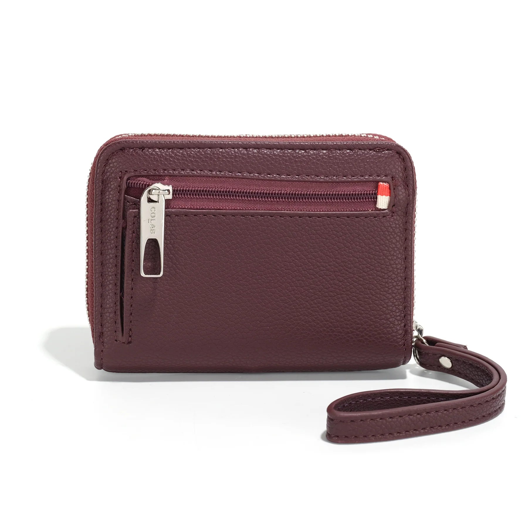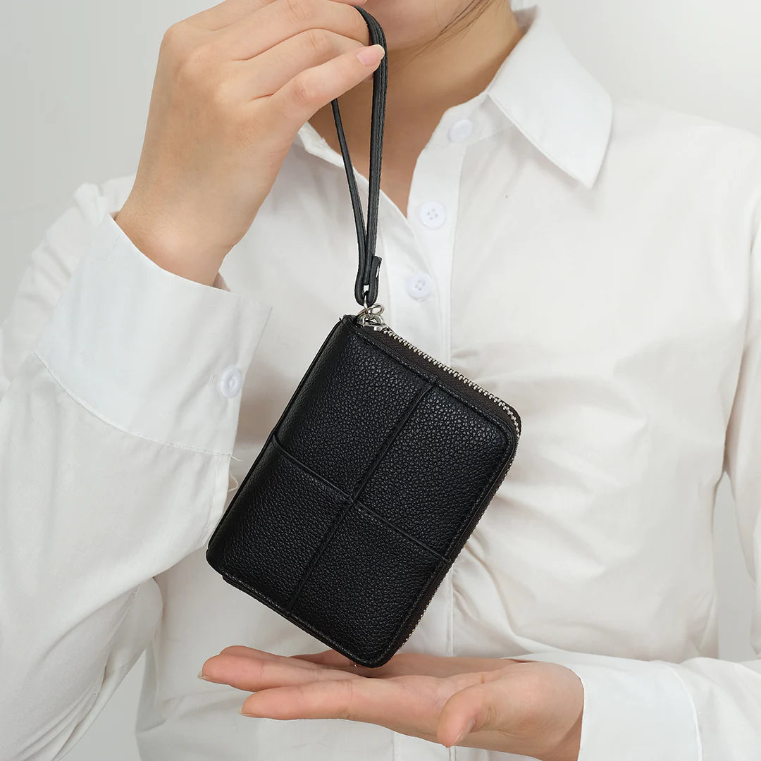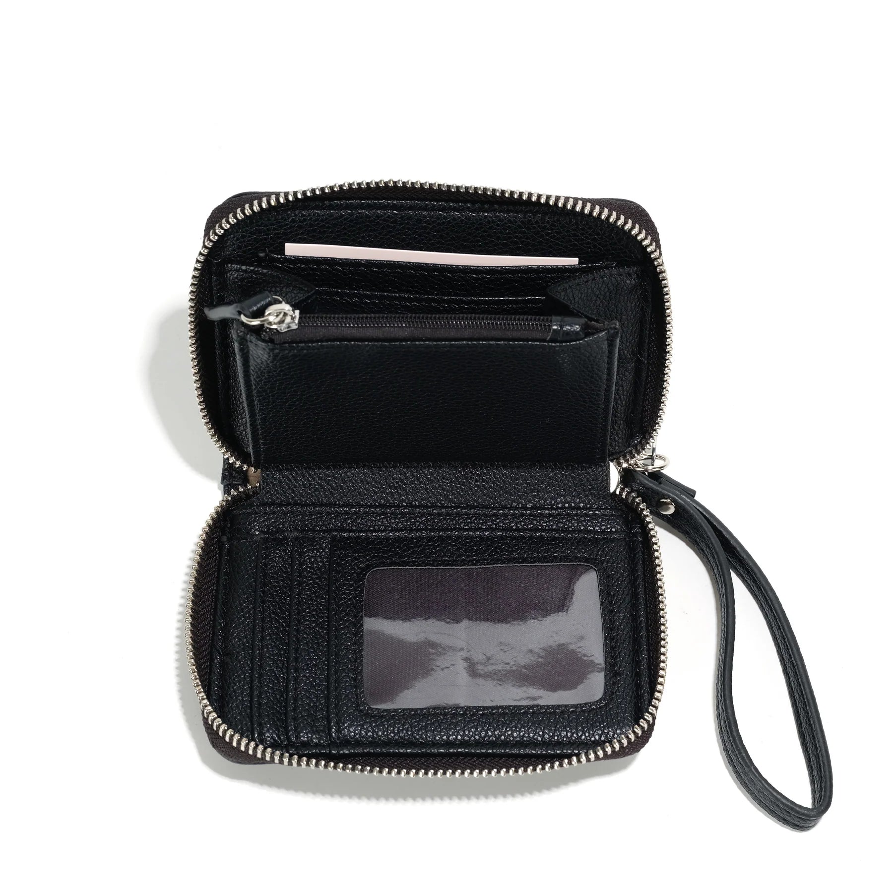 This small wallet has 6 card slots, an ID slot, and an inside and outside coin zip.