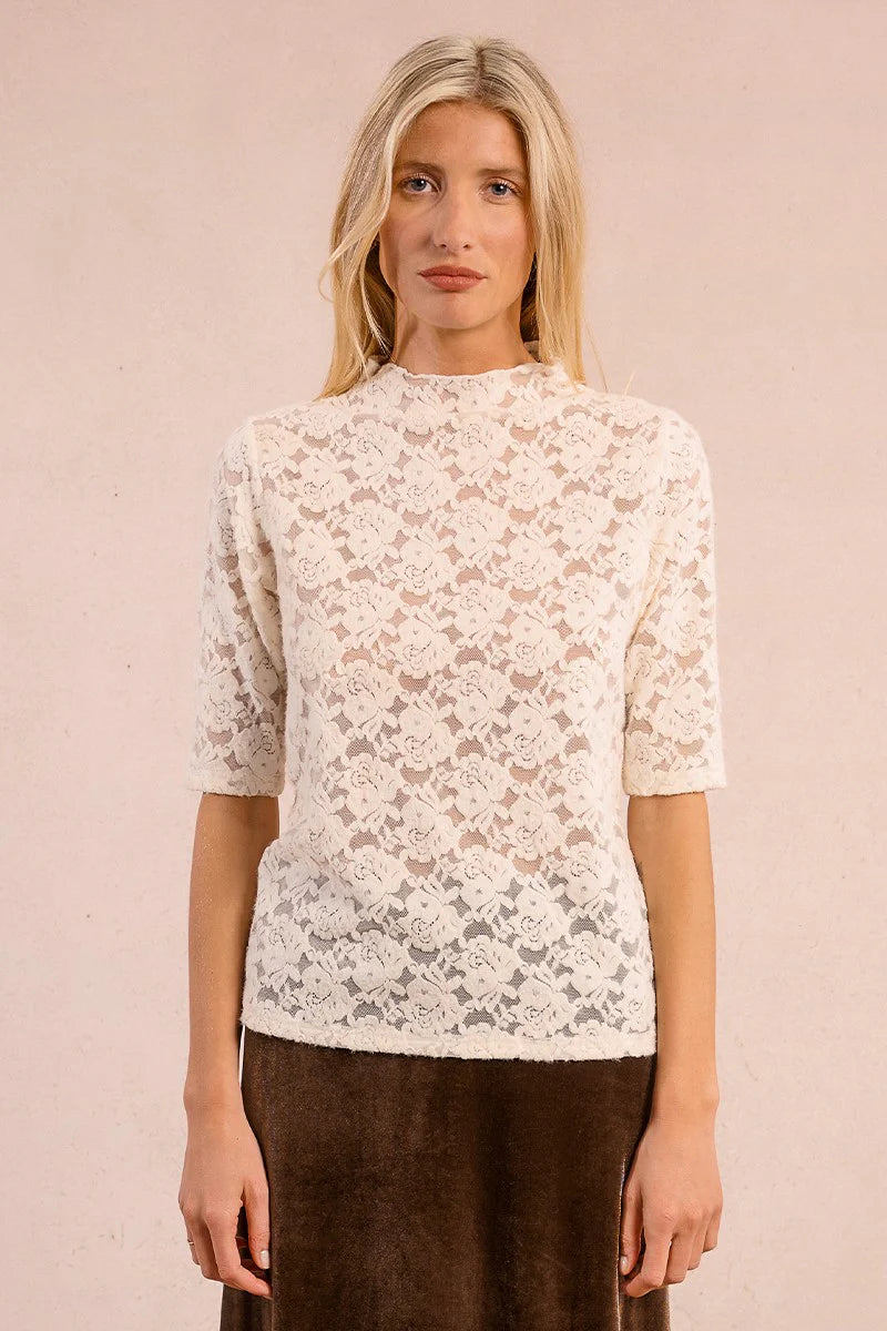 Elevate your wardrobe with this versatile lace half-sleeve top in winter white. The delicate lace fabric adds refined texture and visual interest, while the half-sleeve design offers practical layering for transitional seasons. Style it with a skirt for polished occasions or pair with jeans for effortless everyday wear. This piece seamlessly transitions from casual to dressed-up, making it an essential addition to any well-curated closet.