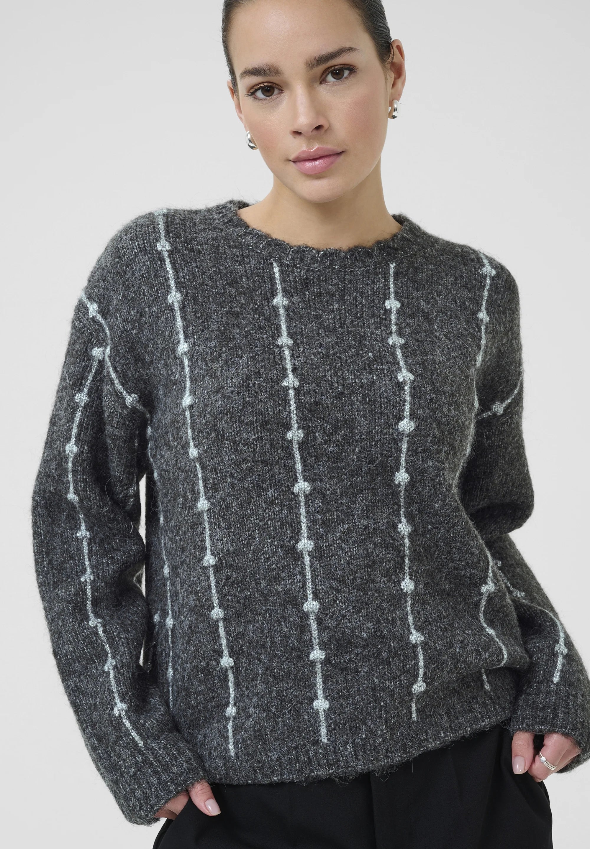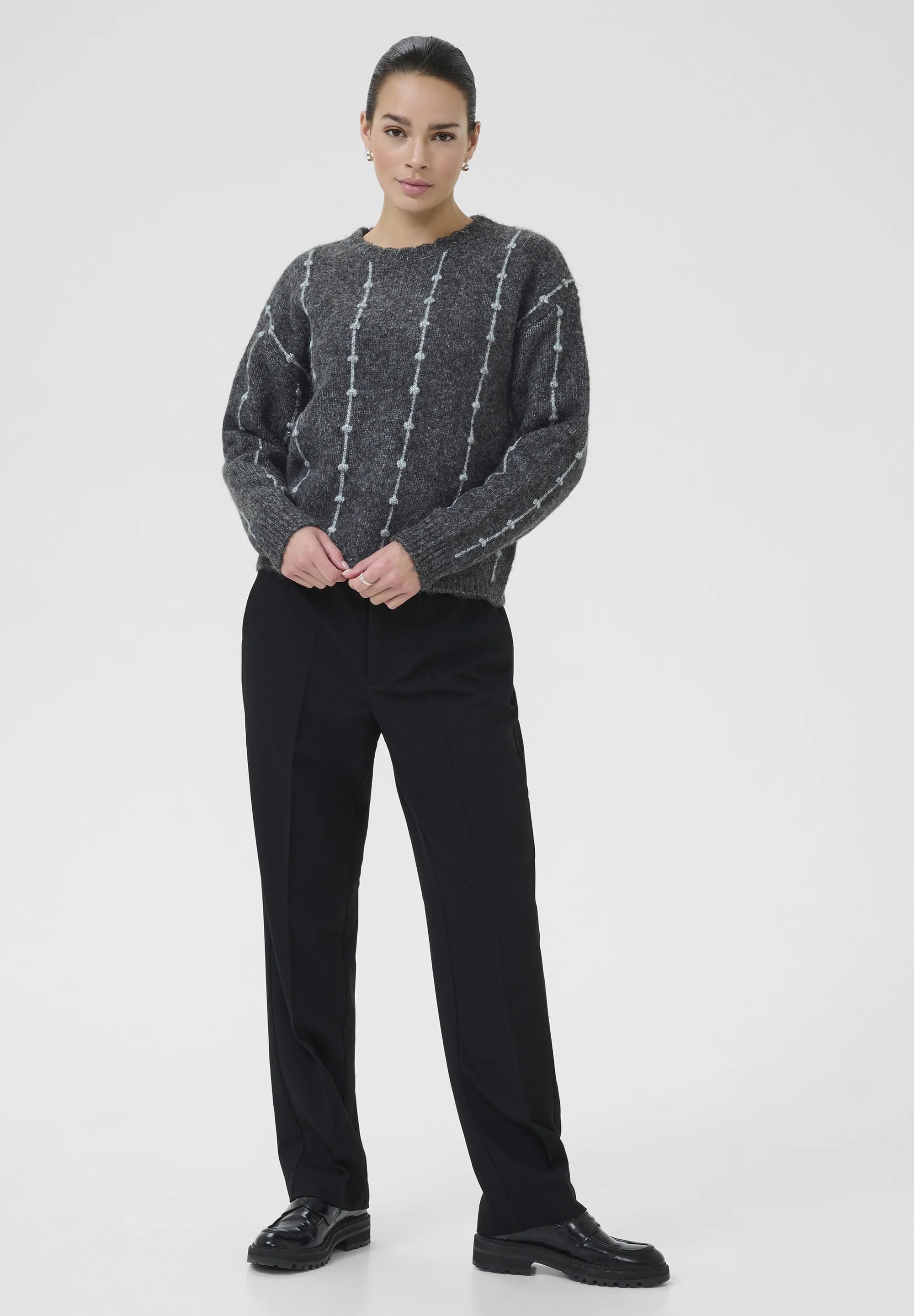 This women's pullover sweater offers a relaxed fit and cozy comfort, featuring a classic crew neckline, long sleeves, and subtle vertical textured detailing. Designed for everyday versatility and ease of movement.