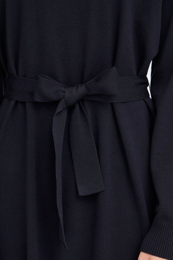 Effortlessly elegant, this light knit dress combines comfort with refined style. The loose silhouette skims the body without clinging, while the above-knee length offers versatile day-to-evening wear. Long sleeves provide coverage and sophistication, and the coordinating knit belt cinches the waist to define your shape. Crafted from breathable, lightweight knit fabric, it moves with you throughout your day—perfect for layering or wearing solo across seasons. Pairs perfectly with our Parza Short Trench Jacket, our Satin Square Scarf and our Amma Animal Print Flats for a chic, put together look.