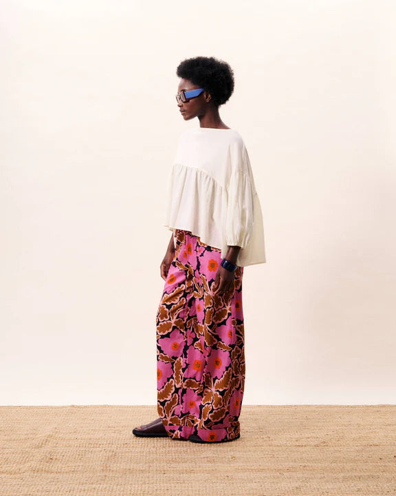 The Victoria Lotus Pant brings effortless elegance to your everyday wardrobe. These wide-leg trousers feature a striking printed design that captures attention, while sharp pleats at the waist create a polished, structured silhouette. The relaxed fit through the hips and thighs flows beautifully to a generous leg opening, offering both comfort and sophisticated style.